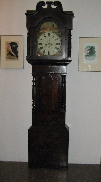 cassa in legno di mogano, quadrante dipinto, completo in tutte le sue parti, ottimo stato